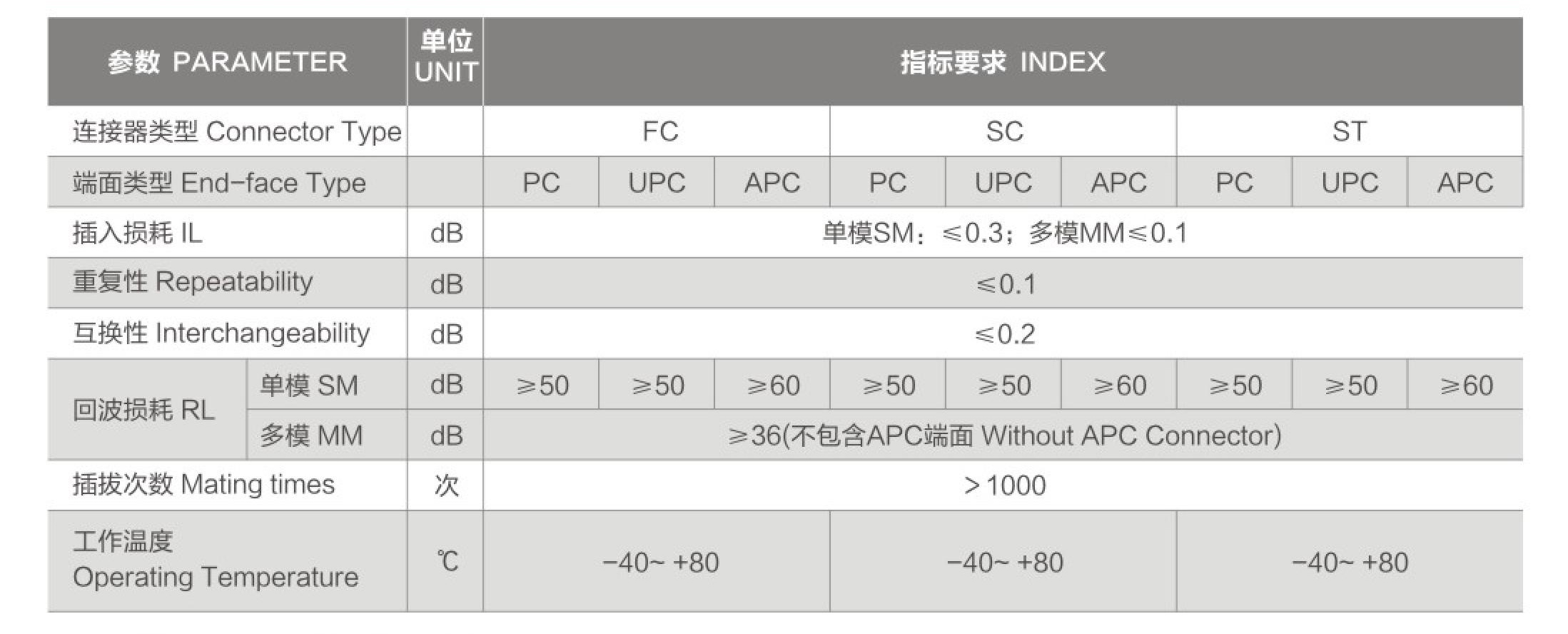 各類光纖連接器規(guī)格齊全